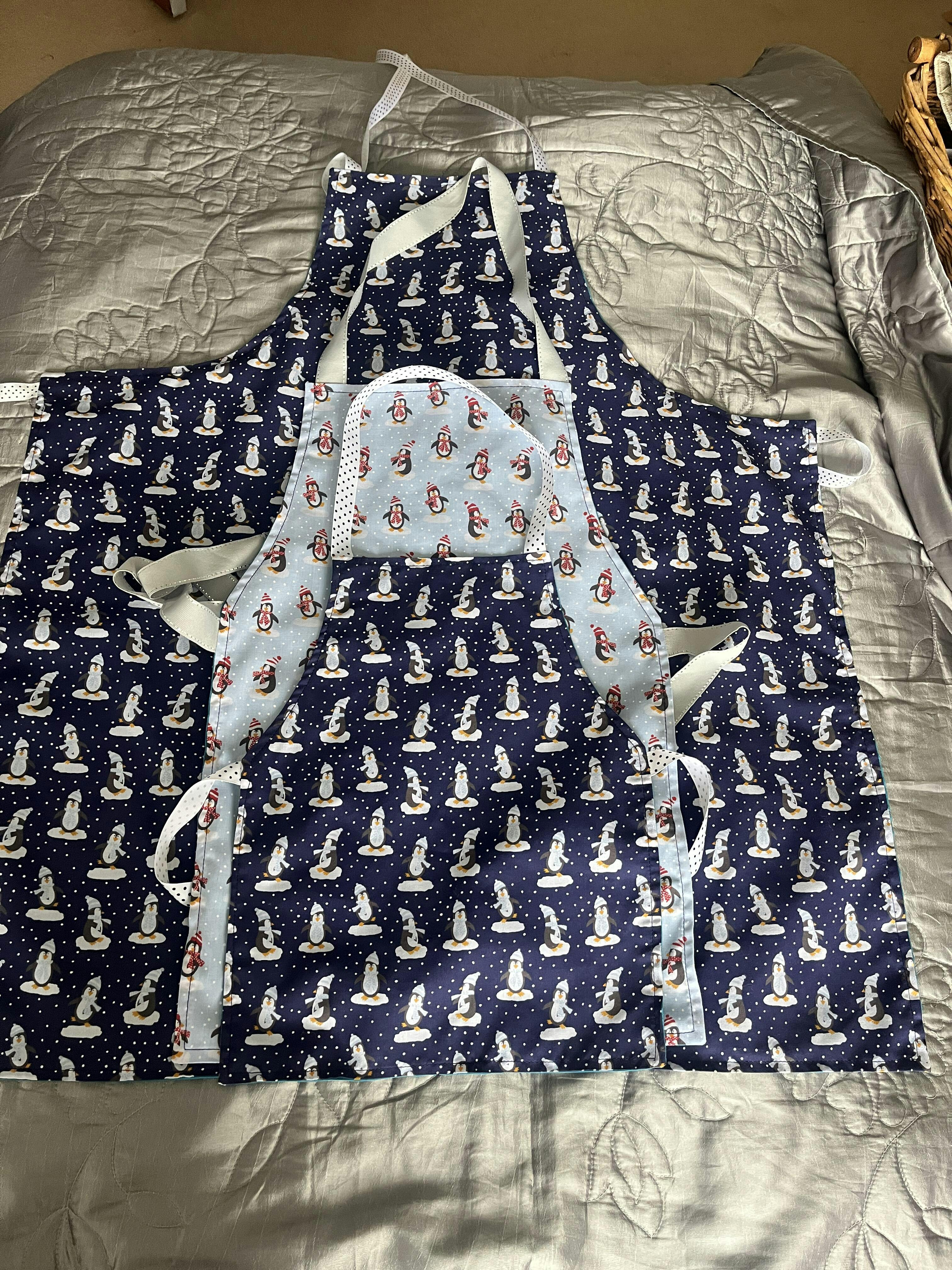 Christmas Dancing Penguin Polycotton Floral Fabric - Blue