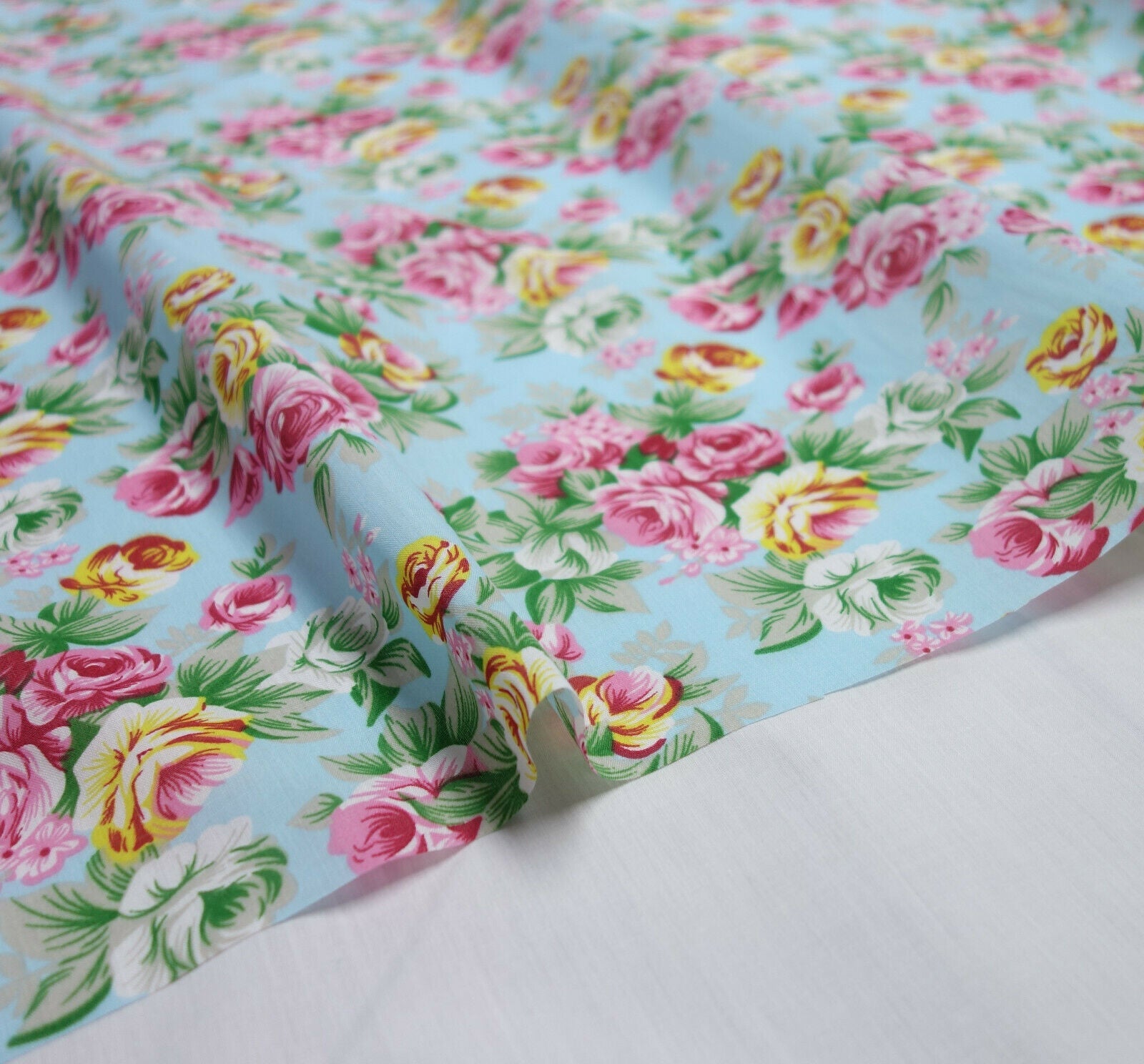 Rosie Sky Shabby Chic Polycotton Floral Fabric