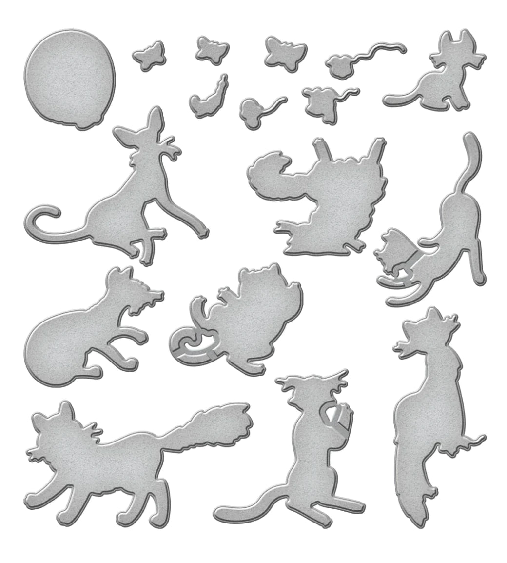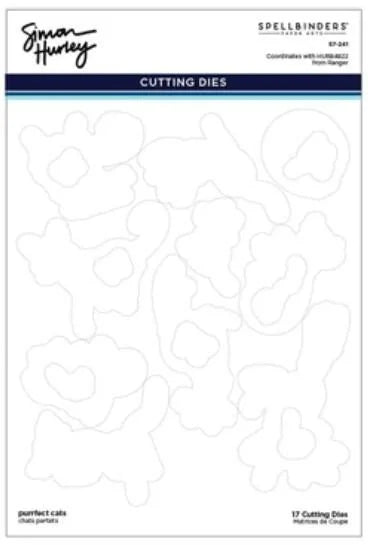 Purrfect Cats Etched Dies by Simon Hurley in collaboration with Spellbinders is a set of 17 thin metal cutting dies that are full of playful cats and their accessories. Design to work with HUR84822 Purrfect Cats Clear Stamp Set (sold separately) to make them come to life!